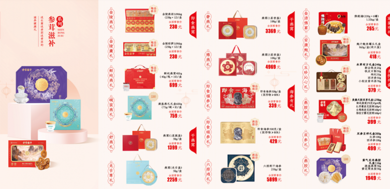 该系列正在全体设想上融入品牌汗青符号取东方审美言语,气概稳沉典雅,兼具留念意义取珍藏价值;正在礼盒设置装备摆设上,则甄选多款高端滋补食材,好比冻干虫草、冻干海参、冻干鲍鱼、西洋参等,充实表现“用料讲求、设置装备摆设有分量”的典藏属性。
