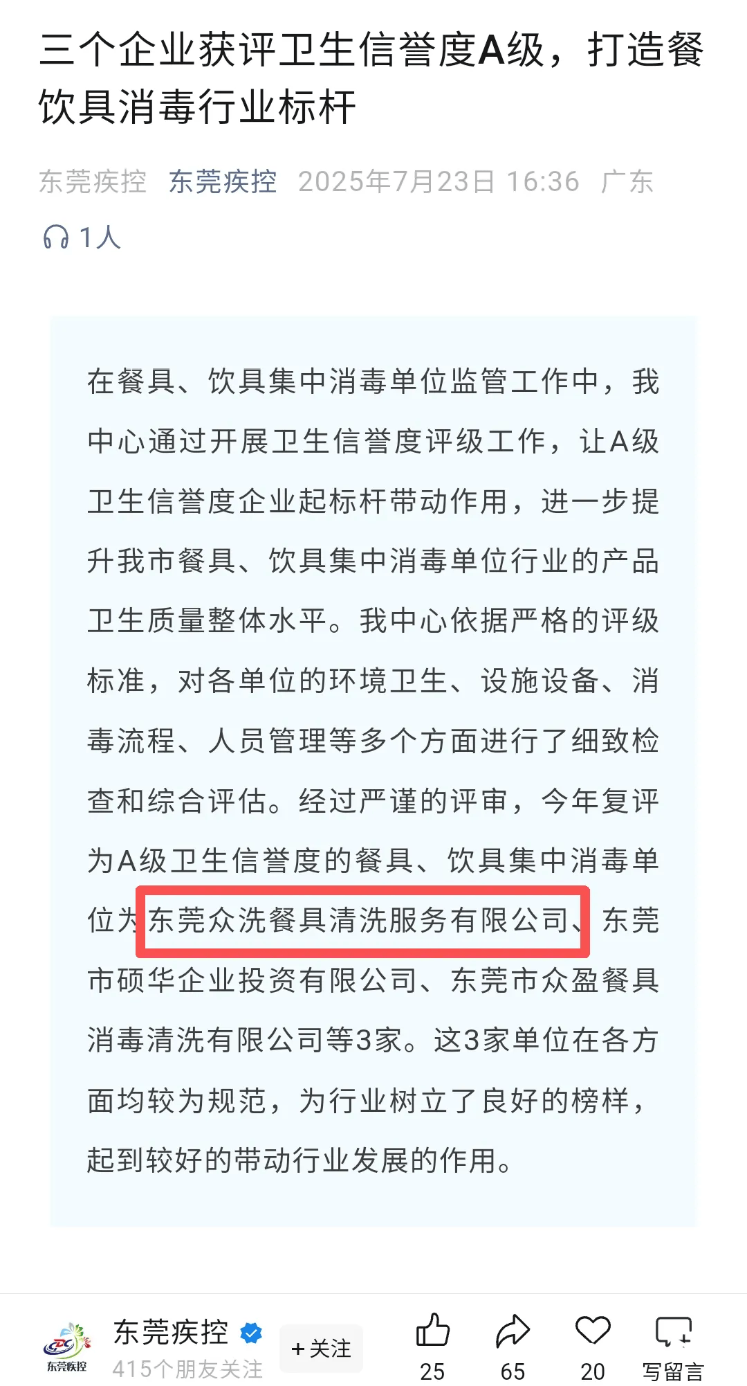店利用封拆的消毒碗具时,疑误食了碗具内的残留浸泡粉,导致嘴唇、口腔及肠胃立马不适,当晚随即送院洗胃,病院诊断为洗涤剂中毒。据悉,涉事夜宵店利用的是由东莞众洗餐具清洗办事无限公司供给的封拆消毒餐具,并许诺承担相关义务。可是,出产过程能否存正在缝隙,后续能否会加强监管等问题,仍有待涉事企业和卫生监管部分解答。11月初,市平易近许先生向南都N视频反映,10月27日凌晨,其正在寮步一家名为“老四川团鱼鸡煲脆皮烤鱼”的餐馆吃夜宵时,利用由东莞众洗餐具清洗办事无限公司(下称“众洗餐具公司”)供给的封拆消毒餐具,期间没寄望到碗具内残留的洁净餐具用的浸泡粉,时误食了浸泡粉,导致口腔、嘴唇有灼烧感及肠胃不适,随即向店家反映环境,并前去东莞市寮步病院洗胃。据悉,事发后,经餐馆联系上供给餐具的众洗餐具公司后,当晚该公司放置工做人员伴随许先生前去病院,并取走涉事的餐具——一只碗。事发当天白日,众洗餐具公司相关担任人前去病院探望许先生,经许先生方面要求,由众洗餐具公司担任人叶某某出具了一份载明两边身份消息的手写许诺书。许诺书称:餐具上有浸泡粉残留,导致许先生正在用餐时感受嘴和喉咙有灼痛感,后需送医洗胃,其认可该现实,并许诺许先生住院期间的费用及后续因而事导致的其他肠胃问题,11月3日,许先生出院,众洗餐具公司领取了住院期间的医疗费用,但两边未能就补偿事宜告竣分歧。同日,南都N视频记者德律风联系众洗餐具公司担任人叶某某,但愿厘清为何餐具上会有残留浸泡粉的问题。叶某某正在德律风中知悉记者来意后称,“你不消打德律风给我,打给我们的法务就好了”,随即挂断德律风,此跋文者多时段多次拨打其德律风,均显示该号码正正在通话中。记者经发送短信扣问法务联系体例,未获答复。南都N视频记者留意到,东莞疾控号正在本年7月发文《三个企业获评卫生诺言度,打制餐饮具消毒行业标杆》称,饮具集中消毒单元,其正在各方面均较为规范,为行业树立了优良楷模。该文还提到,东莞市的正轨餐、饮具集中消毒单元的产物一般都印有二维码,市平易近能够通过手机相关企业的工商消息。记者从头来到涉事的夜宵店发觉,该店供给的都是由塑料膜封拆的轮回用消毒碗筷,塑料膜上印刷有字样和二维码,出产商为“东莞众洗餐具清洗办事无限公司”。经扫描二维码,页面显示“留意:东莞卫生监视平台临时无此餐饮具企业消息”,页面底部标有“东莞市卫生健康局”字样,此外再无其他消息。卫生行政部分对餐具、饮具集中消毒办事单元负有监视查抄义务。记者正在11月初已向涉事企业所正在地东城街道的卫生健康局发送采访函,以厘清事因及扣问能否会加强同类企业监管,截至发稿前未获答复。